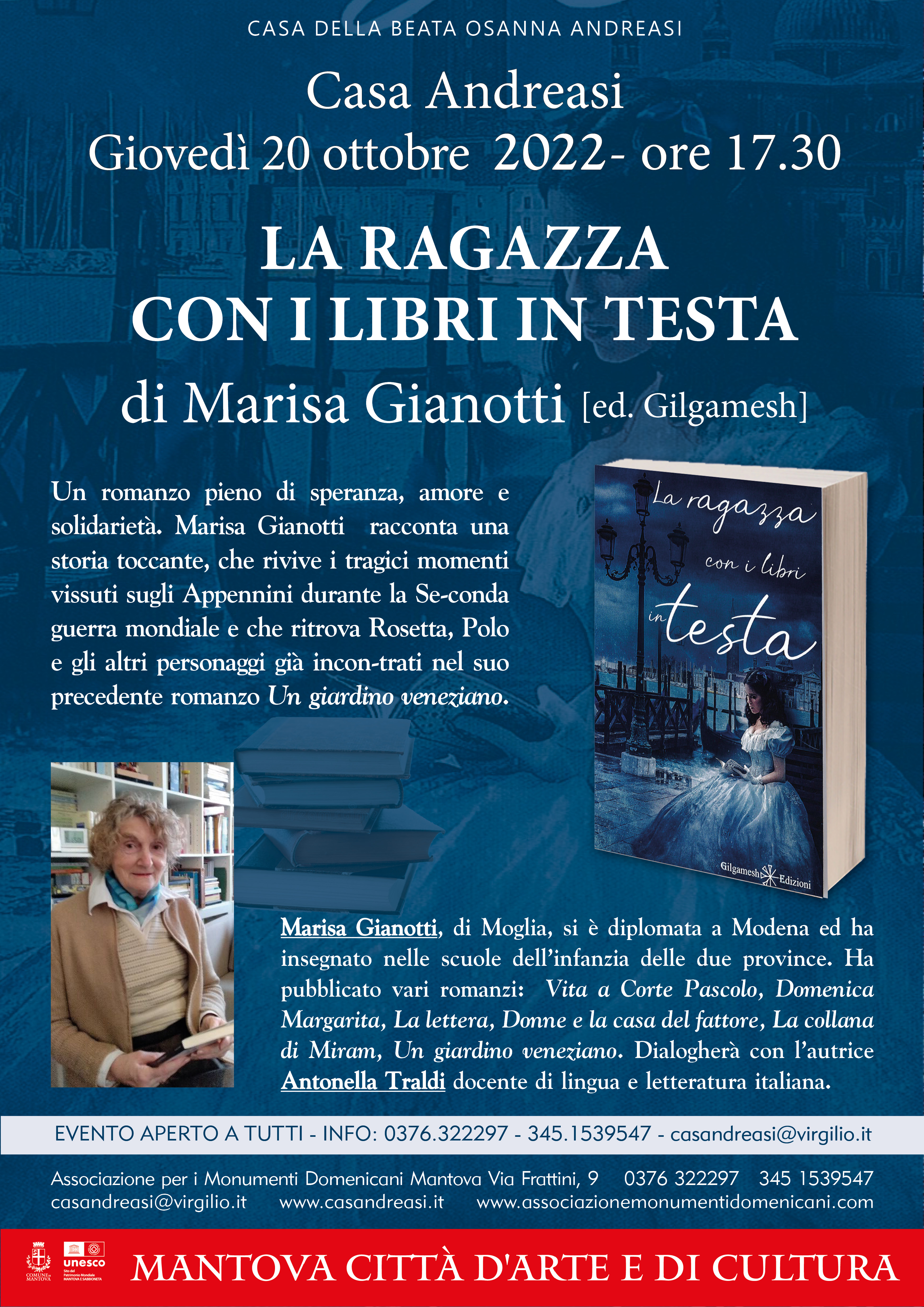 La ragazza con i libri in testa presentazione del libro di Marisa Gianotti [ed. Gilgamesh] Casa Andreasi – Giovedì 20 ottobre 2022- ore 17.30 Condividi: Condividi su WhatsApp (Si apre in una nuova finestra) WhatsApp Condividi su Facebook (Si apre in una nuova finestra) Facebook Condividi su X (Si apre in una nuova finestra) X Condividi su Pinterest (Si apre in una nuova finestra) Pinterest Condividi su LinkedIn (Si apre in una nuova finestra) LinkedIn Invia un link a un amico via e-mail (Si apre in una nuova finestra) E-mail Stampa (Si apre in una nuova finestra) Stampa Mi piace Caricamento... Correlati Lascia un commento Cancella risposta Δ