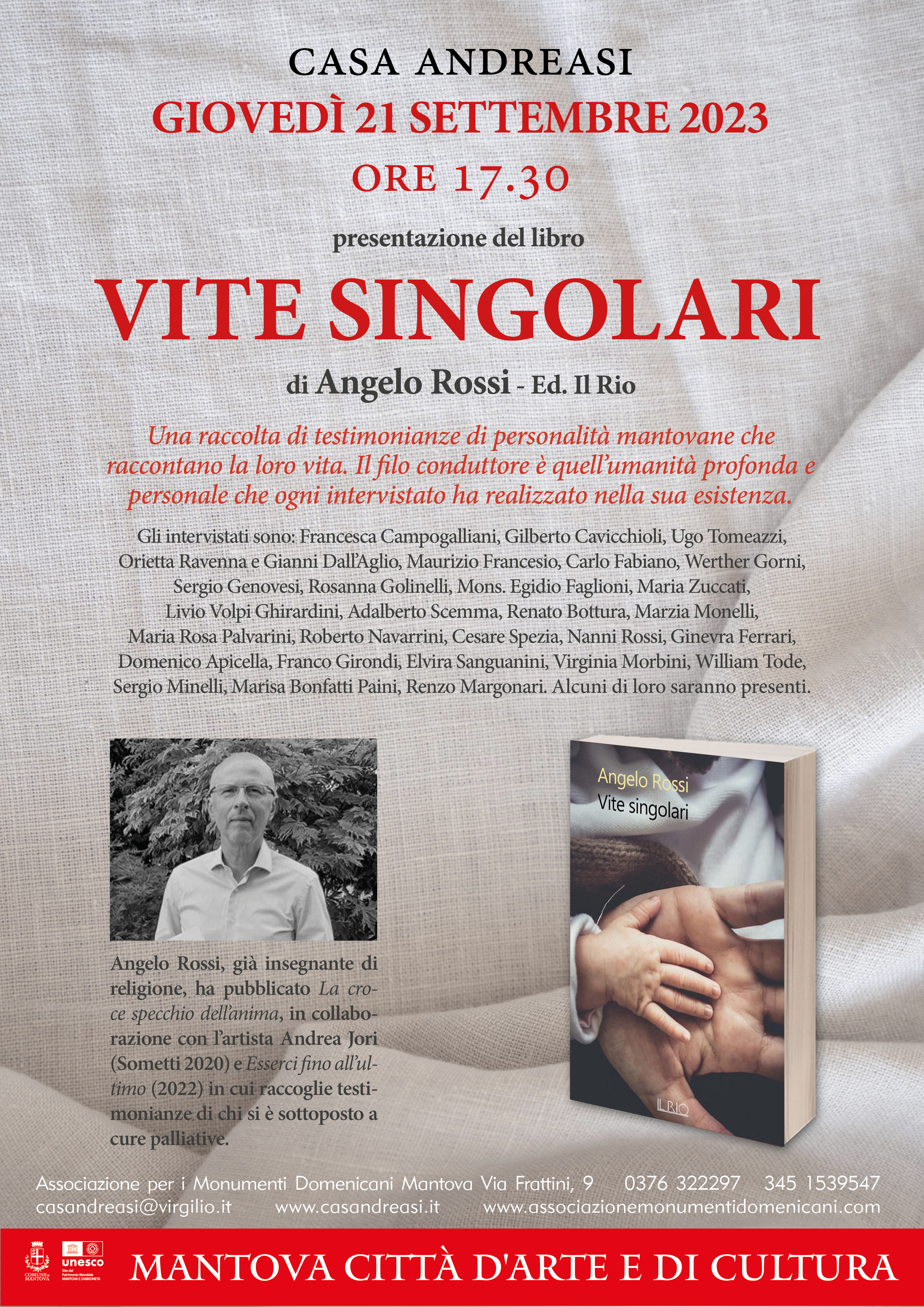 VITE SINGOLARI – presentazione del libro di Angelo Rossi – Ed. Il Rio Casa Andreasi – GIOVEDI’ 21 SETTEMBRE 2023 – ore 17.30 Condividi: Condividi su WhatsApp (Si apre in una nuova finestra) WhatsApp Condividi su Facebook (Si apre in una nuova finestra) Facebook Condividi su X (Si apre in una nuova finestra) X Condividi su Pinterest (Si apre in una nuova finestra) Pinterest Condividi su LinkedIn (Si apre in una nuova finestra) LinkedIn Invia un link a un amico via e-mail (Si apre in una nuova finestra) E-mail Stampa (Si apre in una nuova finestra) Stampa Mi piace Caricamento... Correlati Lascia un commento Cancella risposta Δ
